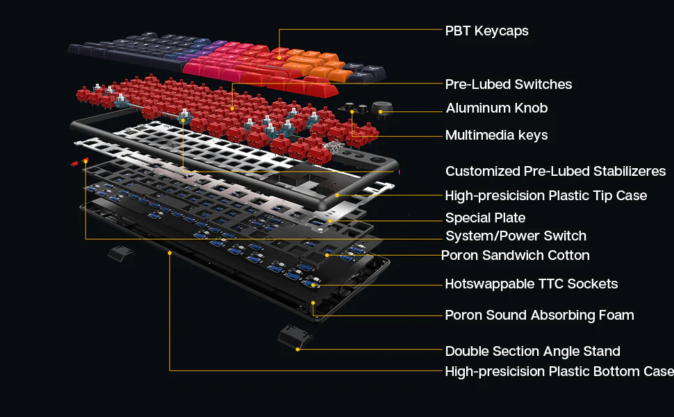 EPOMAKER CIDOO ABM084 TKL İsti Swap RGB 2.4Ghz/Bluetooth 5.0/Poron Köpüklü Simli Mexanik Düymə Klaviatura NKRO, 3000mAh Batareya, E-Sport Win/Mac/Linux/Linux(G) üçün Boya Altı PBT Klaviaturası