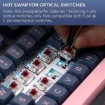 • 【Fırlanan Düymə ilə 75% Hotswap Klaviatura】Skyloong GK75 klaviaturası isti dəyişdirilə bilən terminallarla təchiz olunub, onların köməyi ilə lehimləmədən birbaşa optik açarları quraşdıra bilərsiniz. Klaviatura 75% olmaqla, ev klasterlərini ümumi istifadə edilən ev/sil/pgup düymələrinin bir sütununa çevirir və siçan üçün çox yerə qənaət edir. F cərgəsinin sonuna fırlanan əlavə etməklə, klaviatura sadəcə sola və sağa döndərməklə dəyişən səs səviyyəsini yerinə yetirə bilər. (Qeyd: Yalnız Optik açarlarla isti dəyişdirilə bilər)