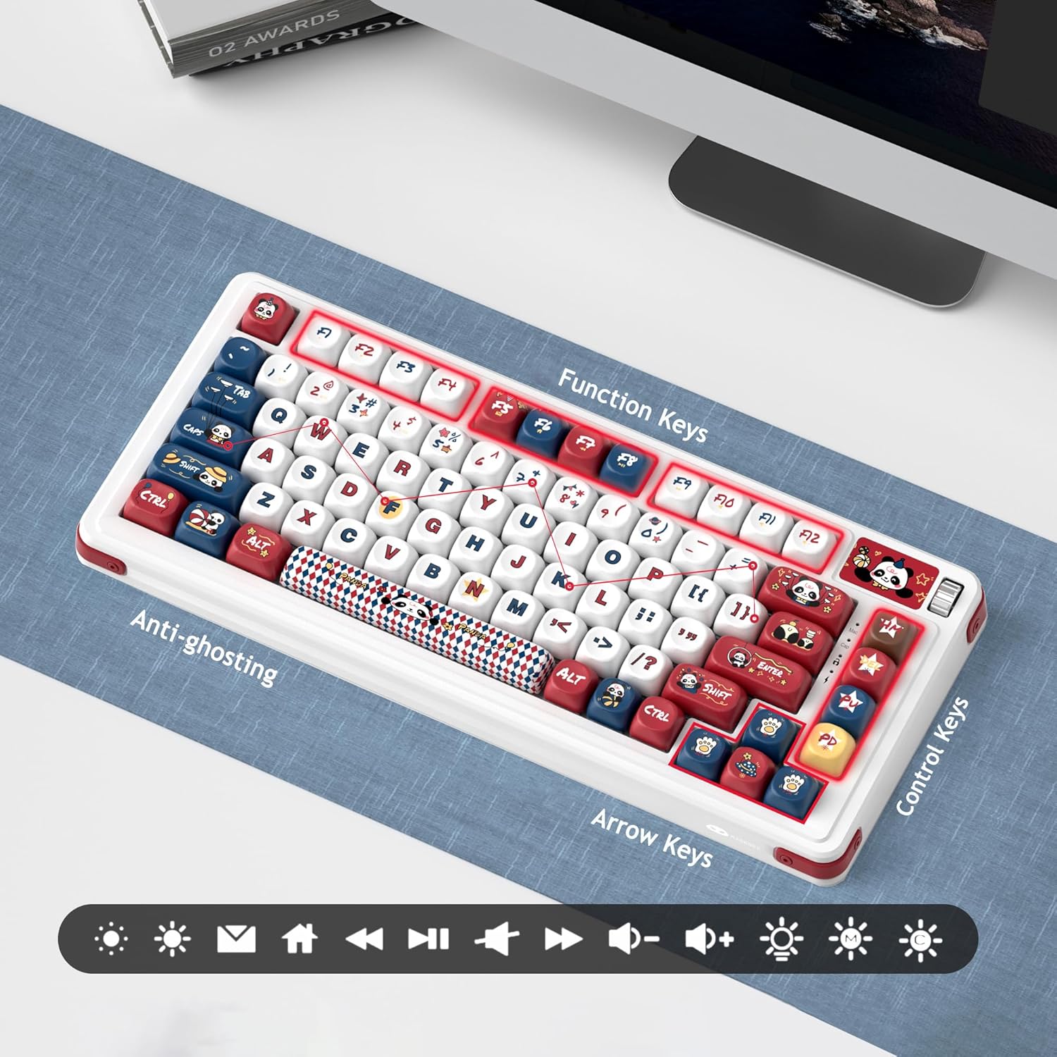 [Creative 75% Layout and N-key Rollover]: Bu 75% klaviatura funksional düymələri və ox düymələrini saxlayaraq, daha çox rahatlıq və praktikliyi ilə kompakt olmaqla, iş masası sahəsinin 25%-nə qənaət edir. 100% anti-ghosting, erqonomik davamlı PBT düymələri, həmçinin 4000mAh böyük tutumlu batareya ilə təchiz olunub və win/mac ikili sistemini dəstəkləyir.