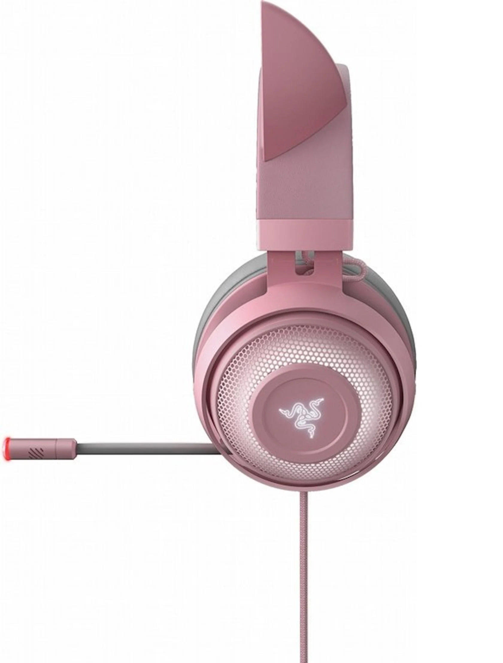 Razer Kraken Kitty RGB USB Oyun Qulaqcığı: THX 7.1 Spatial Surround Sound – Chroma RGB İşıqlandırma – Çıxarılan Aktiv Səs-küyü ləğv edən Mikrofon – Yüngül Alüminium Çərçivə – PC üçün – Kvars Çəhrayı