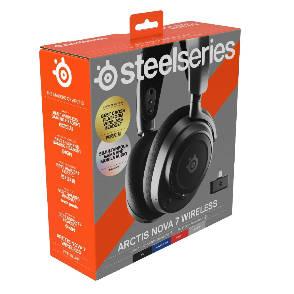 SteelSeries Arctis Nova 7 Simsiz Çox Platformalı Oyun Qulaqcığı — Neodimium Maqnit Sürücülər — 2.4GHz + Qarışdırıla bilən Bluetooth — 38Hr USB-C Batareya — ClearCast Gen2 AI Mic — PC, PS5, Switch, VR, Mobil