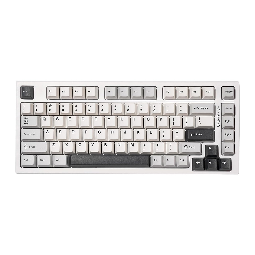 • 5 tərəfli Boya Alt PBT Klaviatura Başlıqları Albalı Profili: YUNZII YZ75 PBT 5 tərəfli boya alt düymələrini götürür. Klaviatura əfsanəsi heç vaxt solmayacaq və silinməyəcək. Klassik Albalı profil düymələri, yazmaq və ya oyun oynayarkən rahatlığı artırmaq üçün barmaqlarınızın ucuna uyğun silindrik zirvələrə malikdir.